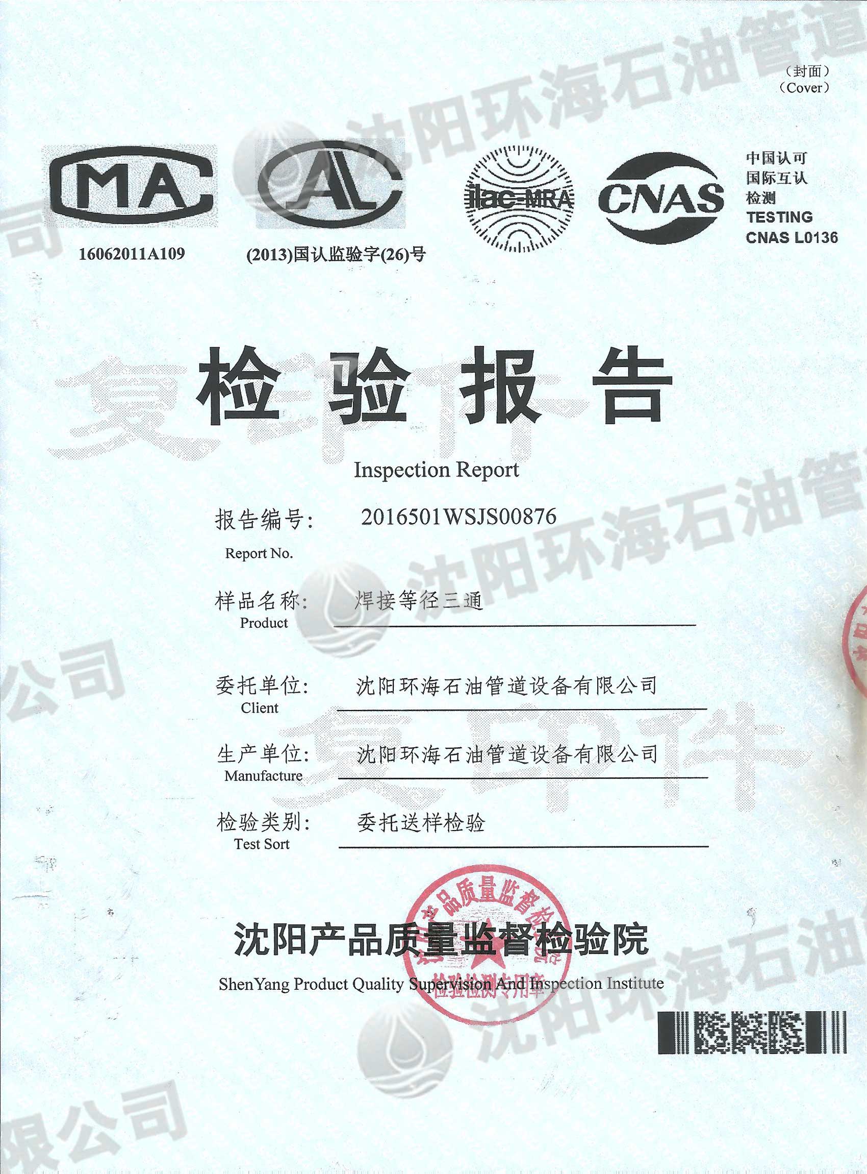 检验报告-焊接等径三通